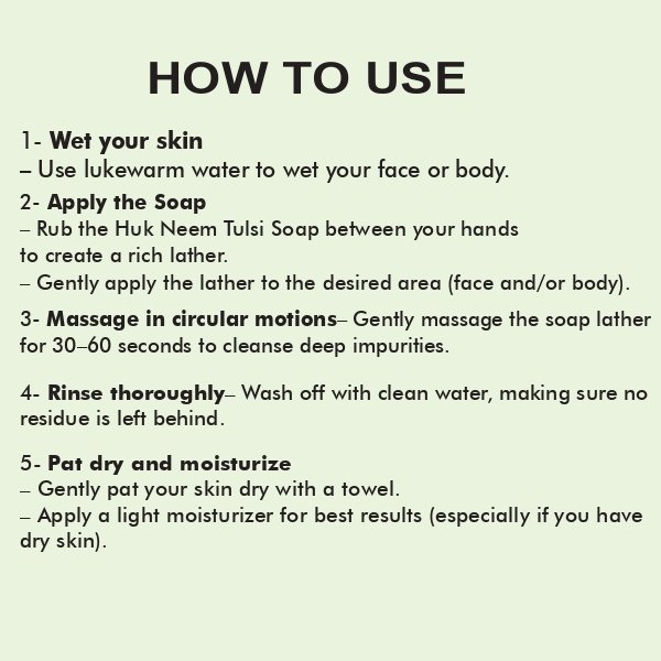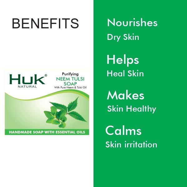 Experience the refreshing and healing benefits of Huk Neem Tulsi Soap. Make it a part of your daily skincare routine and enjoy naturally healthy, glowing skin.